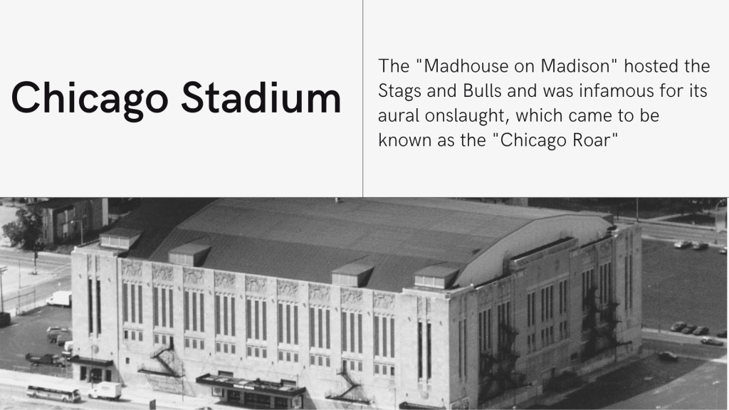 When CNN provided a live broadcast of Chicago Stadium being demolished in 1995 to build a parking lot for its replacement, the camera panned to local fans weeping at the sight. How does a simple building invoke such a strong emotional reaction? Nicknamed “The Madhouse on Madison” for its claustrophobic feel, overtly loud acoustics, and location on West Madison Street, the arena became indelibly linked with raucous Chicago culture. It was the largest arena in history when it was built in 1929 and its uniquely cavernous, barn-like architectural features rendered it especially intimidating (as did its first-of-its-kind air conditioning system, which frequently broke down and filled the arena with fog during games). Chicago Stadium mainly hosted only the NHL’s Blackhawks for much of its run but eventually added the early NBA franchise the Stags, and later the Bulls for almost three decades. It was the site of the Bulls’ first three championships with Michael Jordan, who now displays the arena’s center court logo in his North Carolina home. It was replaced in 1994 by the United Center, whose architects took special care to attempt to recreate the conditions of the infamous “Roar” that Chicago fans could create in the original arena.