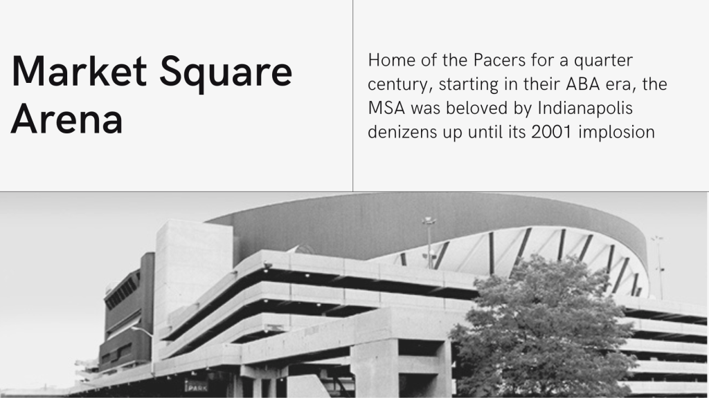 Built in 1974 to revitalize downtown Indianapolis and give a home to the Pacers, then based in the ABA (plus a new World Hockey Association (WHA) team called the Racers), Market Square Arena was a centerpiece of the city for 25 years. It can lay claim to two incredible, non-basketball milestones in its first five years: It was the site of Elvis Presley’s final concert, a 1977 show just a few weeks before his death, and it was the first venue of Wayne Gretzky’s pro hockey career, in a 1978 WHA game with the Racers. Perhaps befitting Pacers history, the most notable basketball moment in the arena’s history arguably involved an opposing player, as Michael Jordan started his 1995 comeback with a game in Market Square Arena. All that being said, there are fond memories for Pacers fans over the years of what they affectionately abbreviated as MSA. Though the Pacers never reached the NBA Finals there, they did play the 1975 ABA Finals in MSA, losing the series to the Kentucky Colonels. Like so many sports venues built before the ’80s, Market Square Arena was ultimately the victim of its lack of capacity for the luxury boxes and suites that define money making in modern arenas. The Pacers moved to Conseco Fieldhouse in 1999 and, almost tauntingly, finally made their first NBA Finals appearance that season, after losing in the Conference Finals in four of their final six years in MSA.
