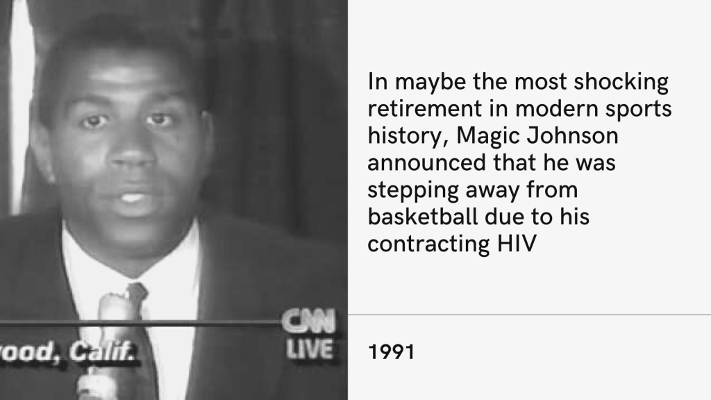 46) 1991: Magic Johnson announces he has contracted HIV and is retiring