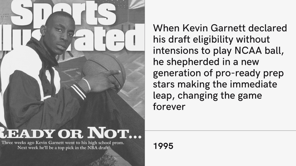 50) 1995: Kevin Garnett declares his eligibility for the NBA Draft
