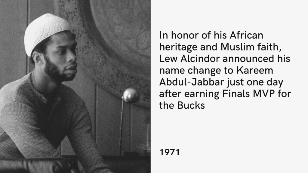 26) 1971: Lew Alcindor changes his name to Kareem Abdul-Jabbar