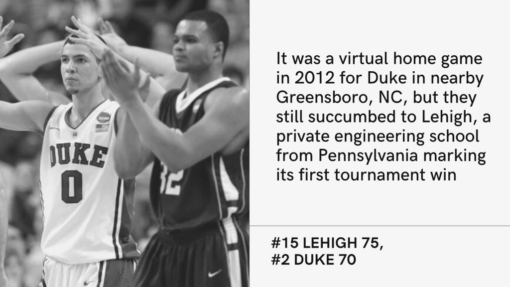 10) Lehigh (#15) over Duke, 2012