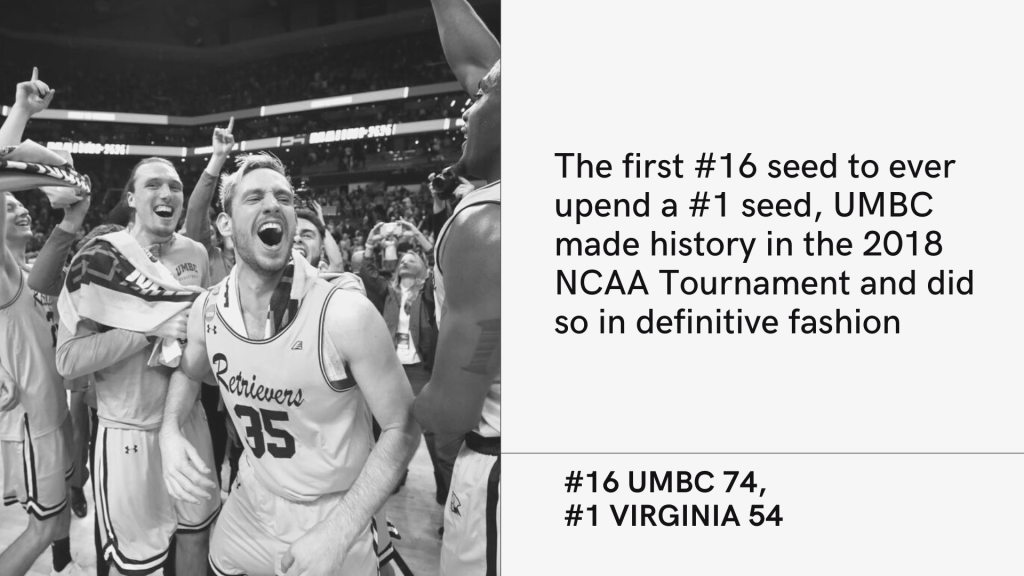 1) UMBC (#16) over Virginia, 2018