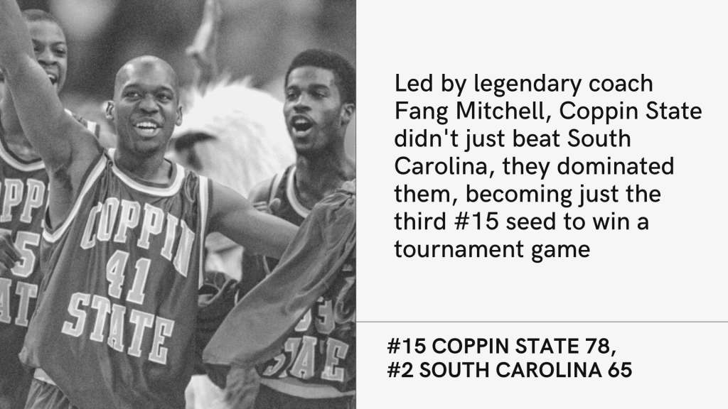 7) Coppin State (#15) over South Carolina, 1997