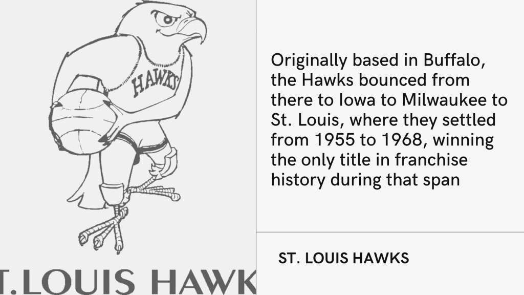 Even before they joined the NBA in 1949 as part of the NBL merger, the Hawks had already moved and changed names once. They started as the Buffalo Bison in 1946 in the NBL before moving to Illinois and becoming the Tri-Cities Blackhawks. “Tri-Cities” in this context referred to the cities of Moline (where they played most of their home games), Rock Island, and Davenport, which sit along the Illinois/Iowa border. Unlike other small market NBL franchises like the Sheboygan Redskins and Waterloo Hawks, who folded after just one season in the NBA, the Blackhawks managed to survive long enough to move (supposedly forced by the league) to a bigger market in Milwaukee in 1951. Since Blackhawks was a specific nod to the Native American history of the tri-cities area, the name was shortened to Hawks upon relocation to Milwaukee. Though they now played in a much bigger city, the Hawks still struggled to attract fans, thanks in large part to their poor performance on the court. They finished in last place in the Western Conference in all four years in Milwaukee, including ’54-’55 when they were led by Rookie of the Year Bob Pettit. When a neutral site game in St. Louis during the ’54-’55 season drew a huge crowd, owner Ben Kerner took it as a sign that it was time to move again. Things went much better for the Hawks in St. Louis, with Pettit leading the way to an NBA title in 1958, plus three other Finals appearances. Attendance started to lag in the late ’60s, due in part to Pettit’s retirement but also the newly formed St. Louis Blues of the NHL and newly relocated St. Louis Cardinals of the NFL drawing away fan attention. Kerner sold the team to a group of Atlanta investors, and in 1968 the franchise made its fourth and final move, becoming the first Southern NBA team. St. Louis has long been a rumored destination for other potentially relocating franchises, but has now gone over a half-century and counting without an NBA team.