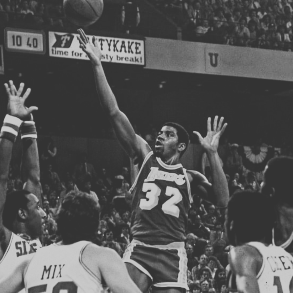 With Kareem Abdul-Jabbar sidelined with a sprained ankle, Magic Johnson steps in as the starting center and dominates game six of the NBA Finals, finishing with 42 points, 15 rebounds, and seven assists in a 123-107 Lakers victory over the 76ers to finish the series. Jamaal Wilkes also comes up big for L.A., dropping 37 points and 10 rebounds. The rookie sensation Johnson is named Finals MVP.