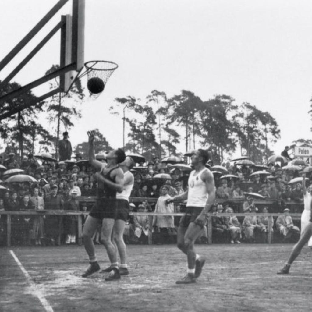 The United States defeats Canada 19-8 in the gold medal game of the inaugural Olympic basketball tournament in Berlin. The sloppy game is played outdoors on a water-logged, clay tennis court. James Naismith is in attendance and hands out the post-game medals. The U.S. roster was made up mostly of AAU players, led by Phillips 66ers legend Joe Fortenberry.